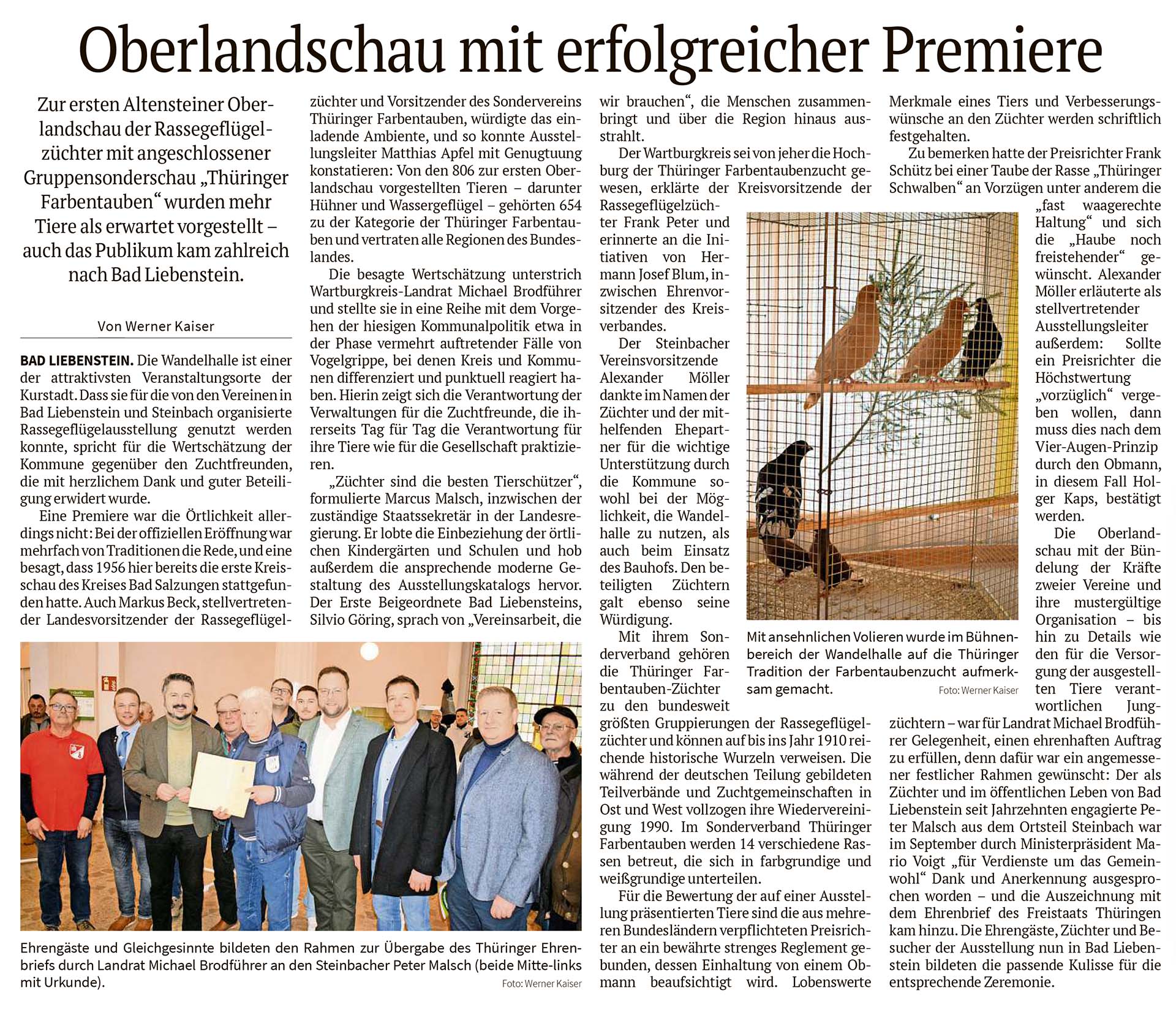 mit angeschlossener Gruppensonderschau der Thüringer Farbentauben