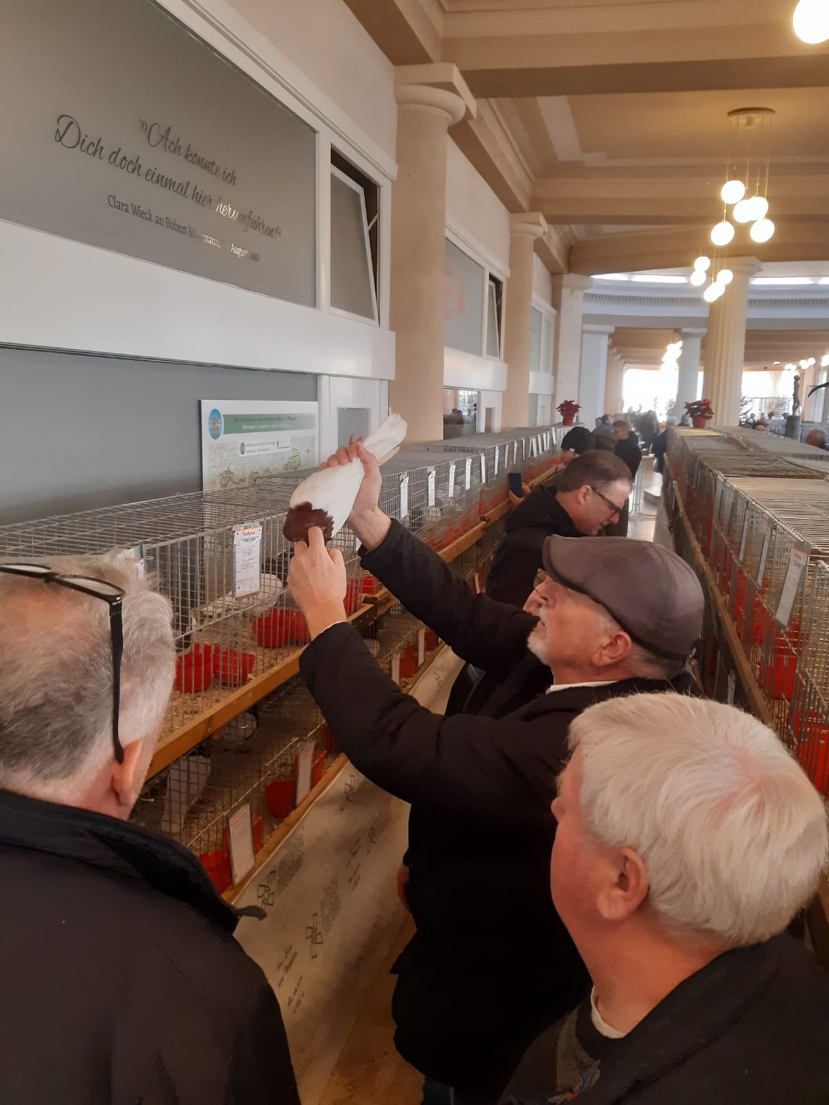 Dort gab es interessante Vorträge rund um die Taubenzucht. Außerdem wurde 2 jährig eine Clubschau durchgeführt. Auf einer solchen erzielte ich auf 0,1 Echterdinger ein „ vorzüglich “ und auch noch den Titel „Champion“. Mit den Rumänischen Bärtchentümmlern konnte ich auf der 9. Deutschen Tümmlerschau 2018 in Altenstadt 6 x „sehr gut“,   1x „hervorragend“ und 1 x „vorzüglich“ erzielen. Letzteres Tier brachte mir das begehrte Tümmlerband ein. 2010 fand die VDT-Schau in Erfurt in den Hallen der EGA statt. Die Veranstaltung wurde dem Thüringer Taubenclub übertragen. Beim Auf- und Abbau der Käfige war ich mit dabei.